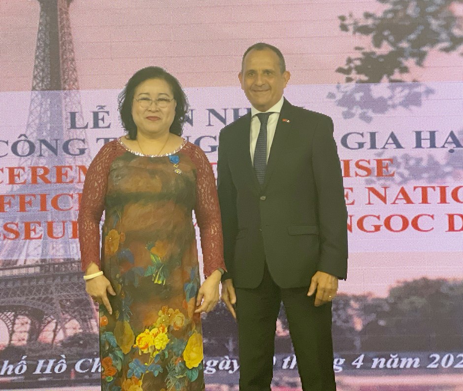 Nhân danh Tổng thống Cộng hòa Pháp, Tổng Lãnh sự Pháp tại TPHCM Vincent Floreani đã trao tặng Huân chương “Công trạng Quốc gia hạng Sĩ quan” cho PGS.TS.BS Nguyễn Thị Ngọc Dung, Chủ tịch Hội Hữu nghị Việt – Pháp TPHCM.