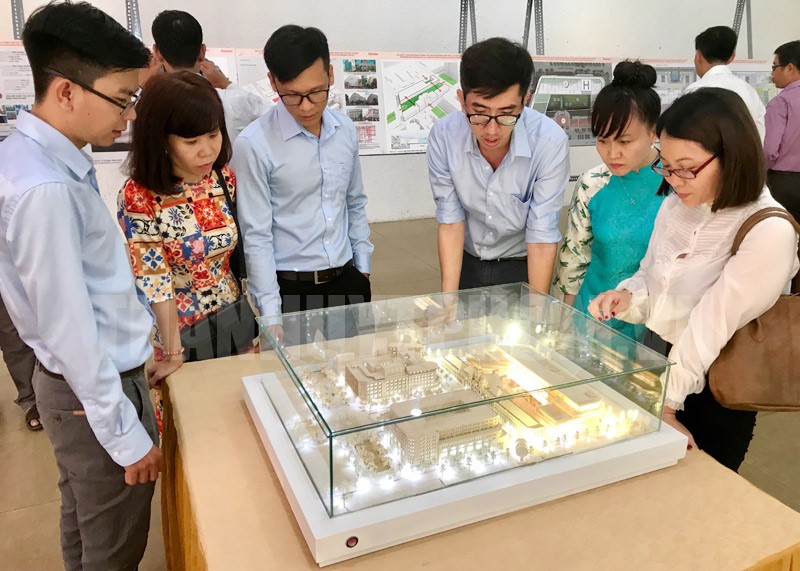 Người dân TP tham quan mô hình tại triển lãm.(Thanhuytphcm.vn) - Sáng 16/4, tại Trung tâm Trưng bày Triển lãm TPHCM, Sở Quy hoạch kiến trúc TPHCM tổ chức khai mạc triển lãm phương án thiết kế quy hoạch tổng mặt bằng tỷ lệ 1/500 của công trình xây dựng mở rộng và nâng cấp trụ sở HĐND và UBND TPHCM.