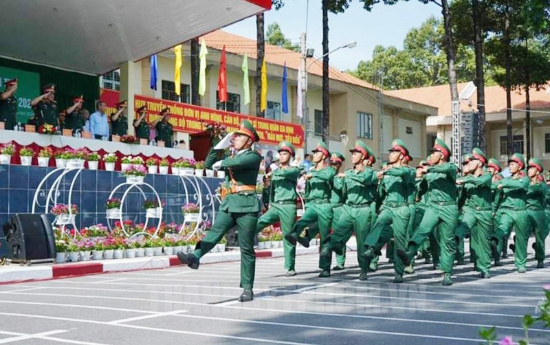 Khối duyệt đội ngũ(Thanhuytphcm.vn) - Ngày 4/6, Trung đoàn Gia Định (Bộ Tư lệnh TPHCM) tổ chức Lễ tuyên thệ chiến sĩ mới (CSM) năm 2024. Thượng tướng Võ Minh Lương, Ủy viên Trung ương Đảng, Thứ trưởng Bộ Quốc phòng dự chủ trì buổi lễ. Cùng tham dự có các đồng chí: Trung tướng Nguyễn Trường Thắng, Ủy viên Trung ương Đảng, Tư lệnh Quân khu 7; Trung tướng Nguyễn Văn Nam, Ủy viên Ban Thường vụ Thành ủy, Tư lệnh Bộ Tư lệnh TPHCM…