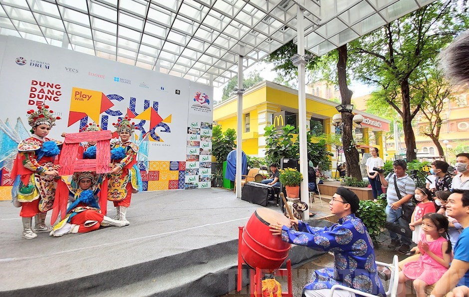 Tiết mục múa Tứ Thiên Vương cầu quốc thái dân an thu hút sự chú ý của khán giả(Thanhuytphcm.vn) - Từ ngày 23 đến 30/1, tại Đường Sách TPHCM (đường Nguyễn Văn Bình, Quận 1), NXB Văn hóa - Văn nghệ TPHCM phối hợp dự án “Vang vọng trống chầu” và Vườn nhà gốm tổ chức tuần lễ văn hóa và sáng tạo “Dung dăng dung dẻ - Play with Culture” chào đón Tết Nguyên đán Tân Sửu 2021.