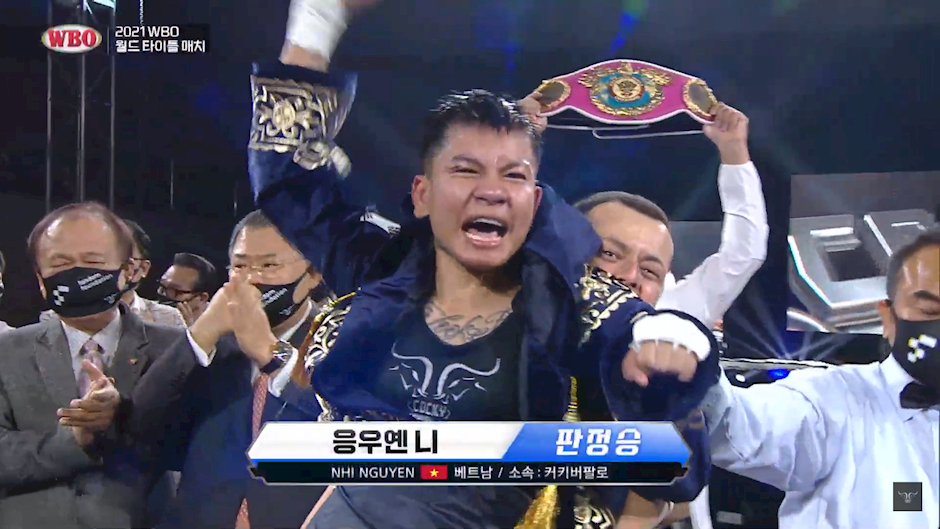 Kết quả, trọng tài xác định chiến thắng thuộc về võ sĩ Việt Nam. Thu Nhi đã đoạt chức vô địch boxing WBO thế giới hạng cân minimum với điểm số sít sao 96 - 94.