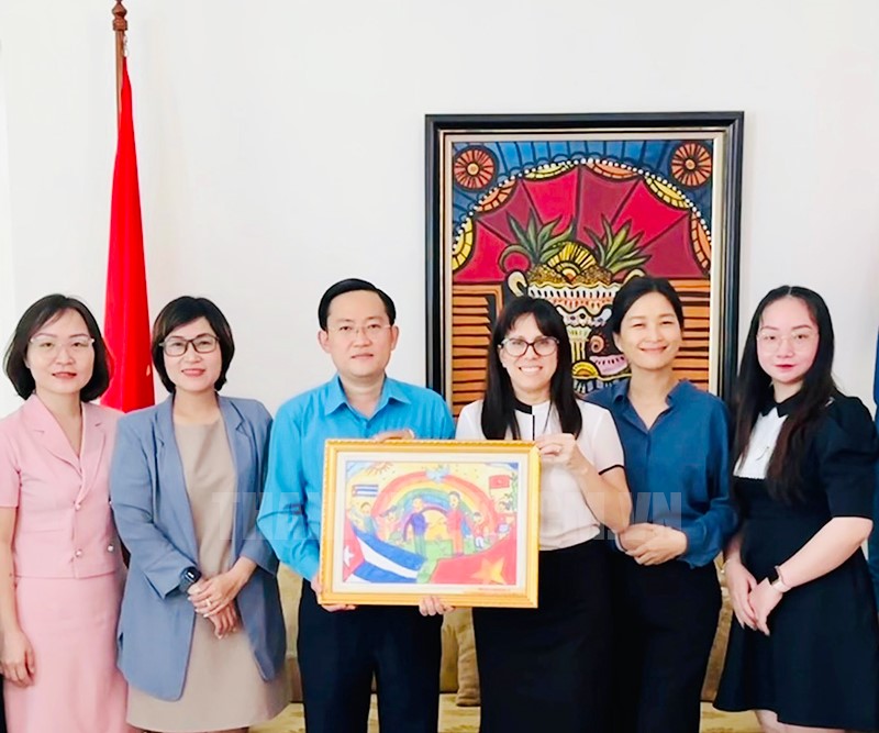Dịp này, đồng chí Phùng Thái Quang trao tặng Tổng Lãnh sự quán Cuba tại TPHCM những bức tranh đạt giải cao trong hội thi Vẽ tranh - Trại hè Thanh Đa năm 2023 với chủ đề “Thiếu nhi Việt Nam - Cuba thắm tình đoàn kết”.