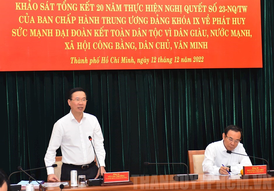 Theo đồng chí Nguyễn Hồ Hải, từ việc thực hiện Nghị quyết số 23-NQ/TW, Ban Thường vụ Thành ủy TPHCM đã rút ra được 5 bài học kinh nghiệm. Đó là, xác định rõ xây dựng, củng cố, phát huy khối đại đoàn kết toàn dân tộc là nhiệm vụ trọng tâm, thường xuyên của cả hệ thống chính trị, là trách nhiệm của người đứng đầu cơ quan, tổ chức, đơn vị; giữ vững sự đoàn kết, nhất trí trong Đảng, trong hệ thống chính trị và Nhân dân; xây dựng vững chắc mối quan hệ mật thiết giữa Nhân dân với Đảng, Nhà nước.
