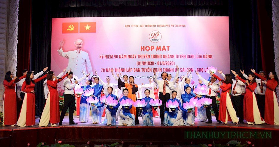 Phát biểu ôn truyền thống tại buổi lễ, Trưởng Ban Tuyên giáo Thành ủy TP Phan Nguyễn Như Khuê nhấn mạnh, trong hành trình lịch sử 90 năm vẻ vang của Đảng và trưởng thành của ngành Tuyên giáo, cũng chính là chặng đường một lòng một dạ sắt son theo Đảng, đoàn kết, đấu tranh anh dũng, kiên cường, năng động, sáng tạo, đổi mới… của cán bộ, đảng viên, chiến sĩ, đồng chí, đồng bào TP Sài Gòn - Chợ Lớn - Gia Định - TPHCM. 90 năm có Đảng lãnh đạo và chính từ tư tưởng, đạo đức, phong cách của Chủ tịch Hồ Chí Minh luôn là niềm tin yêu, là ngọn cờ dẫn dắt toàn Đảng, toàn dân trong sự nghiệp cách mạng lâu dài gian khổ và 70 năm kể từ ngày chính thức tổ chức Ban Tuyên huấn Thành ủy từ tháng 11/1949, qua nhiều giai đoạn cách mạng khác nhau, tên gọi của Ban có khác nhau, song, mục tiêu và nhiệm vụ cách mạng, sự đóng góp và hy sinh to lớn của cán bộ, chiến sĩ trên mặt trận tư tưởng là không thay đổi; ngày càng bản lĩnh, dày dạn, ngày càng được củng cố, tăng cường.