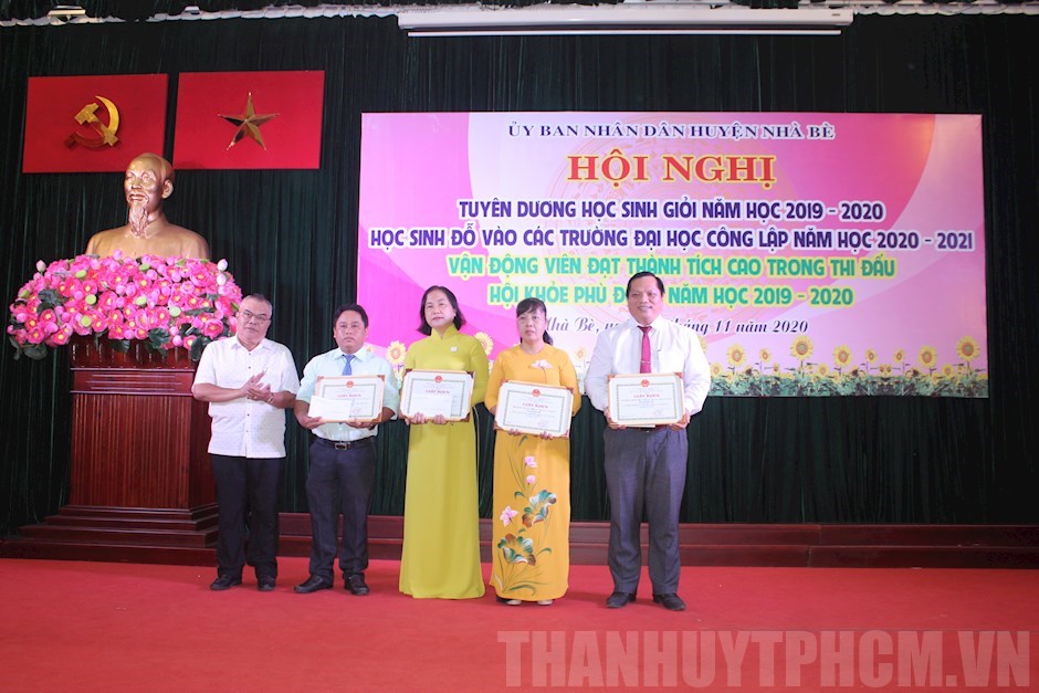 Dịp này, huyện Nhà Bè đã tuyên dương khen thưởng cho 4 trường có nhiều học sinh giỏi cấp Thành phố; 20 giáo viên có nhiều học sinh đạt giải cao trong kỳ thi học sinh giỏi cấp Thành phố năm học 2019 - 2020; 120 em học sinh đạt danh hiệu học sinh giỏi cấp Thành phố; 70 em học sinh đạt kết quả cao trong kỳ thi tuyển sinh lớp 10; 245 học sinh đỗ vào các trường đại học công lập năm học 2020 - 2021; 92 vận động viên đạt thành tích cao trong thi đấu Hội khỏe Phù Đổng cấp Thành phố; 16 huấn luyện viên có nhiều vận động viên đạt thành tích cao trong thi đấu Hội khỏe Phù Đổng cấp Thành phố.