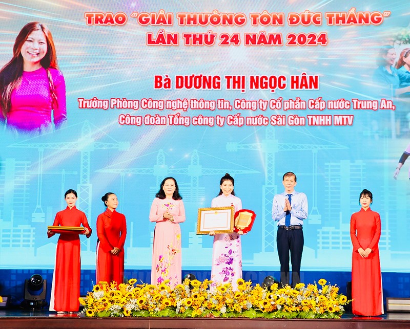 (Thanhuytphcm.vn) - Là một trong những điển hình tiêu biểu trong lao động, sản xuất kinh doanh, có nhiều sáng kiến, cải tiến kỹ thuật, nhiều đề tài nghiên cứu khoa học thiết thực được áp dụng thực tiễn, là những người thợ đầu đàn luôn tận tâm dìu dắt, hướng dẫn các lớp thợ trẻ nâng cao trình độ tay nghề, đảng viên Dương Thị Ngọc Hân, Trưởng Phòng Công nghệ thông tin, Công ty Cổ phần Cấp nước Trung An, đã nhận Giải thưởng Tôn Đức Thắng năm 2024…