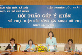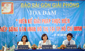 Cập nhật 15:08 13-02-2009Chính quyền phải đi trước một bước trong việc xây dựng giải pháp(Website TU) - Sáng 12-2, Báo Sài Gòn Giải Phóng đã tổ chức buổi tọa đàm “Hiến kế giải pháp thực hiện nếp sống văn minh đô thị”, với sự tham dự của hơn 40 đại biểu các sở, ngành, các cơ quan nghiên cứu, các học giả, đại biểu Hội đồng Nhân dân TP. Chủ tịch HĐND TPHCM Phạm Phương Thảo, Phó Chủ tịch UBND TPHCM Nguyễn Thị Thu Hà và Tổng Biên tập Báo SGGP Trần Thế Tuyển đồng chủ trì buổi tọa đàm. Sau một năm thực hiện nếp sống văn minh đô thị (VMĐT), vấn đề đặt ra là cần có những bước đi, cách làm khả thi, phù hợp với điều kiện, tình hình đô thị của TPHCM…