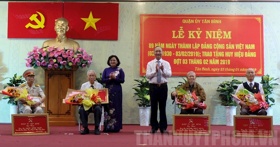 (Thanhuytphcm.vn) - Sáng 25/1, Quận ủy, HĐND, UBND, Ủy ban MTTQ Việt Nam quận Tân Bình tổ chức Lễ kỷ niệm 89 năm Ngày thành lập Đảng Cộng sản Việt Nam (3/2/1930 - 3/2/2019); trao Huy hiệu Đảng cho các đảng viên của Đảng bộ quận đợt 3/2/2019. Ủy viên Ban Thường vụ Thành ủy, Trưởng Ban Tuyên giáo Thành ủy TPHCM Thân Thị Thư đã đến dự.