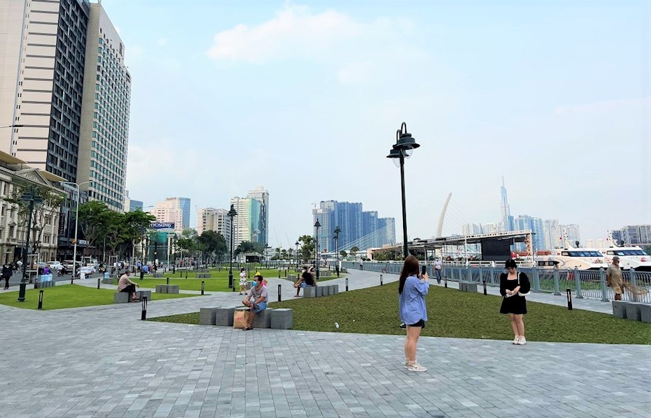 Nhiều người dân đến công viên Bến Bạch Đằng giải trí, đã hết lời khen vì sự hiện đại, thoáng đãng với tầm nhìn bên phố bên sông. (Ảnh: Thanhnien.vn)