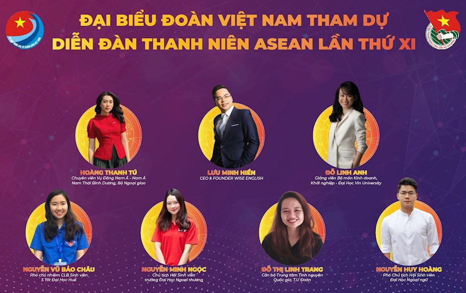 Các đại biểu thanh niên Việt Nam tham gia Diễn đàn Thanh niên ASEAN lần XI(Thanhuytphcm.vn) - Thông tin từ Trung ương Đoàn TNCS Hồ Chí Minh cho biết, Diễn đàn Thanh niên ASEAN lần XI sẽ được tổ chức xuyên suốt tháng 8/2021 theo hình thức trực tuyến. Đại diện cho thanh niên Việt Nam tham gia có 7 đại biểu thanh niên tiêu biểu.