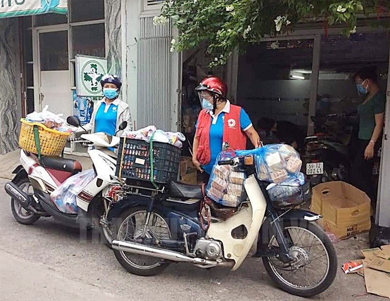 Khi tình hình dịch Covid-19 ngày càng phức tạp, thành phố thực hiện giãn cách xã hội, bà Nhung cùng với các đoàn thể ở khu phố đã chủ động liên hệ vận động các nhà hảo tâm, chủ nhà trọ trên địa bàn chung tay hỗ trợ rau củ, nhu yếu phẩm cho công nhân, người lao động thuê trọ, người già neo đơn, người lớn tuổi có hoàn cảnh khó khăn, hộ nghèo... Để giúp nguồn cung thêm phong phú, bà còn tận dụng tất cả các mối quan hệ của mình vận động nhiều mạnh thường quân, tìm nguồn bán rau củ, nhu yếu phẩm giá bình ổn định nhằm giúp cho nhiều người dân, với quyết tâm không để một ai phải thiếu ăn.