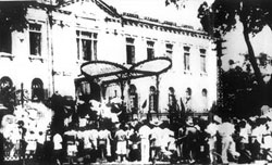 Nhân dân Hà Nội nổi dậy đánh chiếm Bắc bộ phủ (19-8-1945). Ảnh: Vũ Năng An