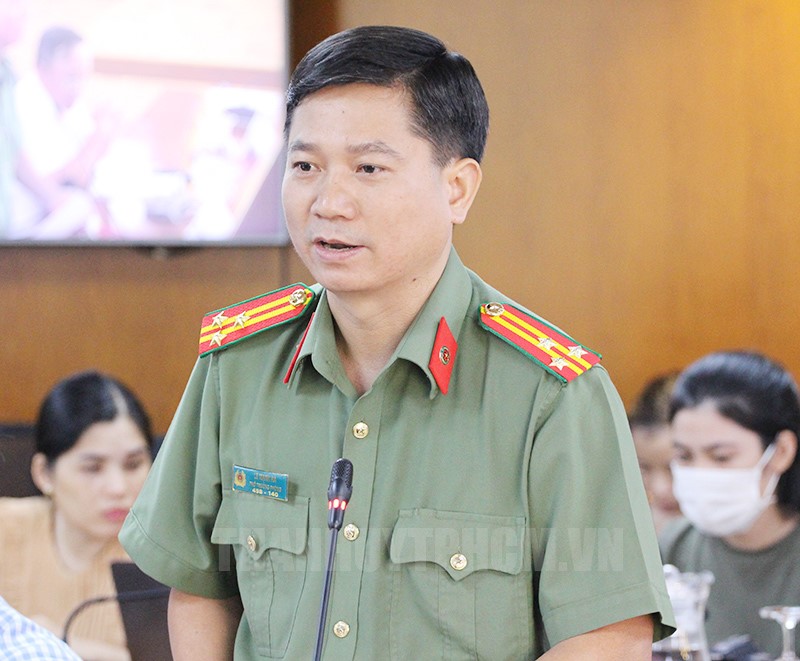 Thượng tá Lê Mạnh Hà thông tin tại buổi họp báo(Thanhuytphcm.vn) - Chiều 7/9, tại buổi họp báo do UBND TPHCM tổ chức, Thượng tá Lê Mạnh Hà, Phó trưởng Phòng Tham mưu Công an TP đã trao đổi một số thông tin liên quan đến tình trạng giả danh công ty điện máy, siêu thị, nhãn hàng... mời người dân đánh giá sản phẩm để nhận sản phẩm, trả công quảng cáo và quà tri ân để lừa đảo.