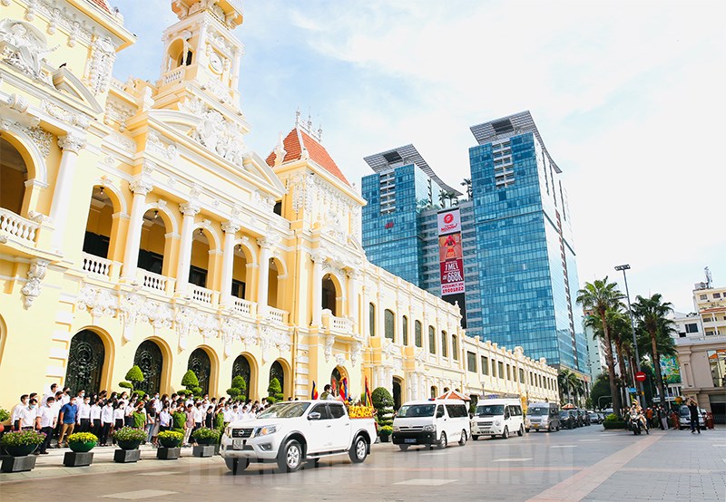Cán bộ, công chức UBND TP chào tiễn biệt đồng chí Lê Hoà Bình lần cuối khi đoàn xe ngang qua trụ sở UBND TPHCM.(Thanhuytphcm.vn) - Sáng 2/4, đoàn xe đưa tiễn Phó Chủ tịch Thường trực UBND TPHCM Lê Hòa Bình về nơi an nghỉ cuối cùng đã di chuyển ngang qua trụ sở UBND TPHCM để cán bộ, công chức, viên chức của UBND TP được chào tiễn biệt đồng chí lần cuối.