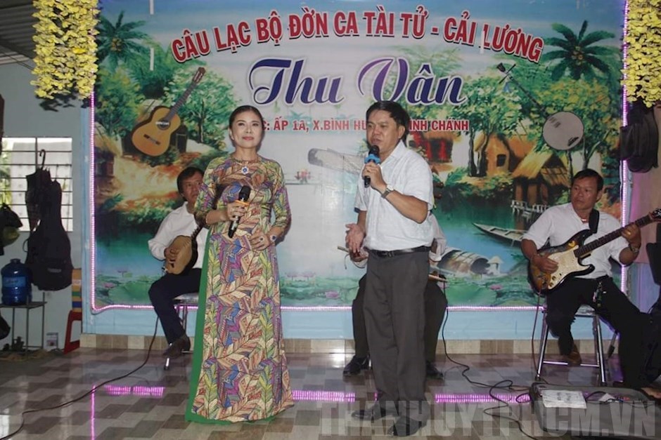 Các thành viên biểu diễn tại CLB Thu Vân(Thanhuytphcm.vn) - Hơn 10 năm qua, Câu lạc bộ (CLB) Đờn ca tài tử (ĐCTT) Thu Vân ấp 1A, xã Bình Hưng, huyện Bình Chánh do ông Trần Thanh Tạo, Bí thư Chi bộ ấp cũng là Chủ nhiệm của CLB Thu Vân đã gắn kết những người yêu thích bộ môn nghệ thuật này và phục vụ nhu cầu hưởng thụ văn hóa, tinh thần của người dân.