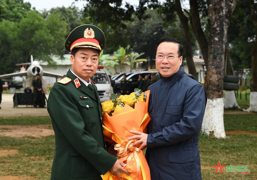 Lãnh đạo Quân ủy Trung ương, Bộ Quốc phòng và thủ trưởng Bộ tư lệnh Binh chủng Đặc công đón Chủ tịch nước Võ Văn Thưởng đến thăm và làm việc.