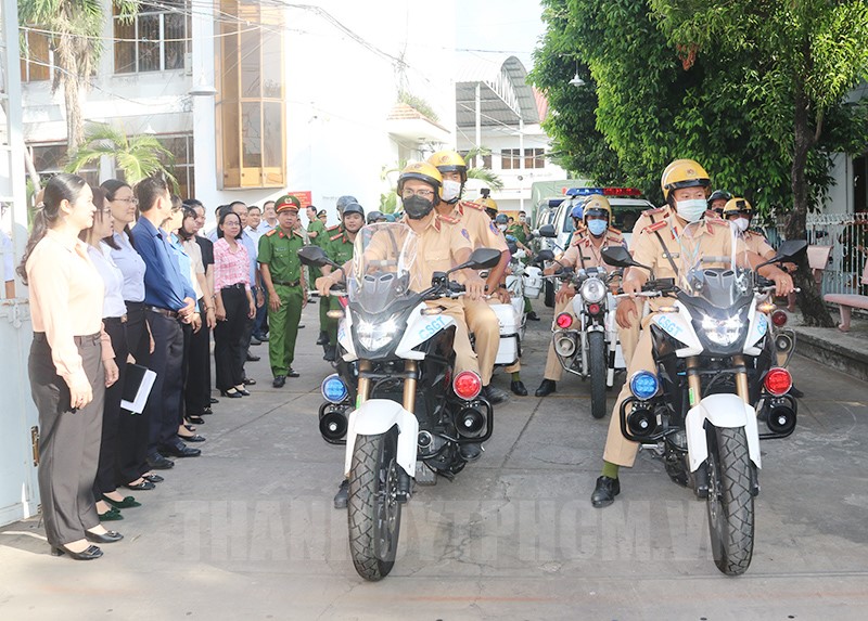 Lực lượng Công an huyện Hóc Môn ra quân tuần tra, kiểm soát và tấn công trấn áp các loại tội phạm.(Thanhuytphcm.vn) - Sáng 15/12, lực lượng Công an huyện Hóc Môn tổ chức Lễ ra quân thực hiện đợt cao điểm tấn công trấn áp tội phạm, đảm bảo an ninh, trật tự Tết Nguyên đán Giáp Thìn 2024. Đến dự có các đồng chí: Huỳnh Thị Xuân Mai, Huyện ủy viên, Phó Chủ tịch UBND huyện; Thượng tá Nguyễn Ngọc Nam, Ủy viên Ban Thường vụ Huyện ủy, Bí thư Đảng ủy, Trưởng Công an huyện Hóc Môn