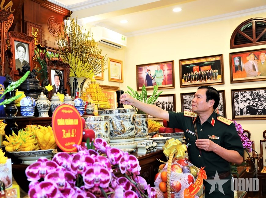 Đại tướng Nguyễn Tân Cương thắp hương tri ân Đại tướng Lê Trọng Tấn.