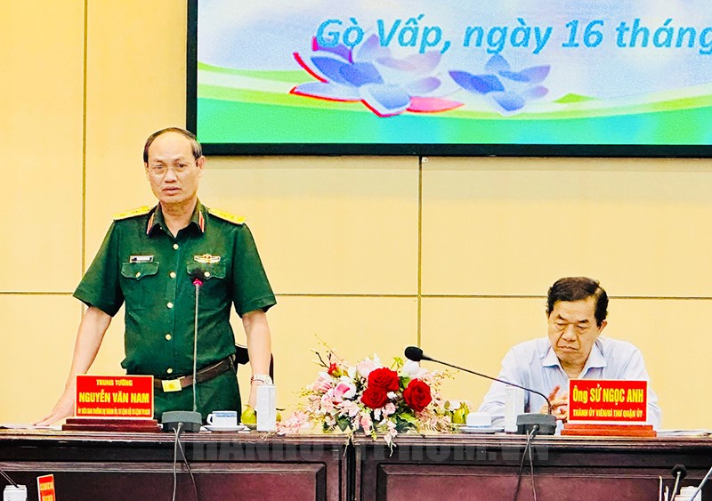 (Thanhuytphcm.vn) - Ngày 16/5, Đoàn công tác của Thành ủy TPHCM do Trung tướng Nguyễn Văn Nam, Ủy viên Ban Thường vụ Thành ủy, Tư lệnh Bộ Tư lệnh TPHCM làm trưởng đoàn đã làm việc quận Gò Vấp về dự án mở rộng, nâng cấp đường Dương Quảng Hàm.