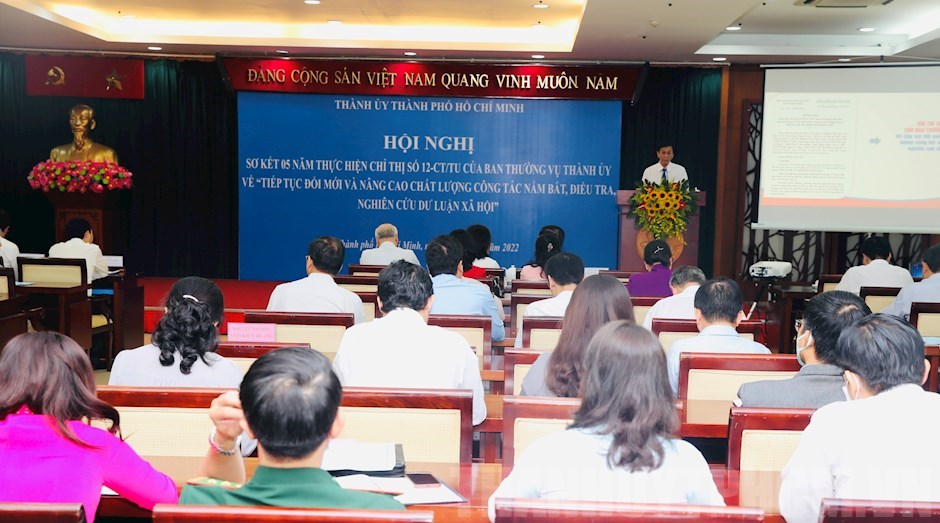 Báo cáo tại hội nghị, Phó Trưởng Ban Tuyên giáo Thành ủy TPHCM Nguyễn Thọ Truyền cho biết, qua 5 năm triển khai thực hiện Chỉ thị số 12-CT/TU, các cấp ủy ngày càng nhận thức rõ hơn về hiệu quả của kênh thông tin dư luận xã hội. Trước các vấn đề có sự ảnh hưởng, tác động lớn đến nhiều thành phần dân cư, cấp ủy địa phương, đơn vị luôn đặt ra yêu cầu về việc nắm tình hình dư luận xã hội, thậm chí tổ chức các cuộc khảo sát, thăm dò dư luận xã hội nhằm có những căn cứ số liệu khoa học khách quan.