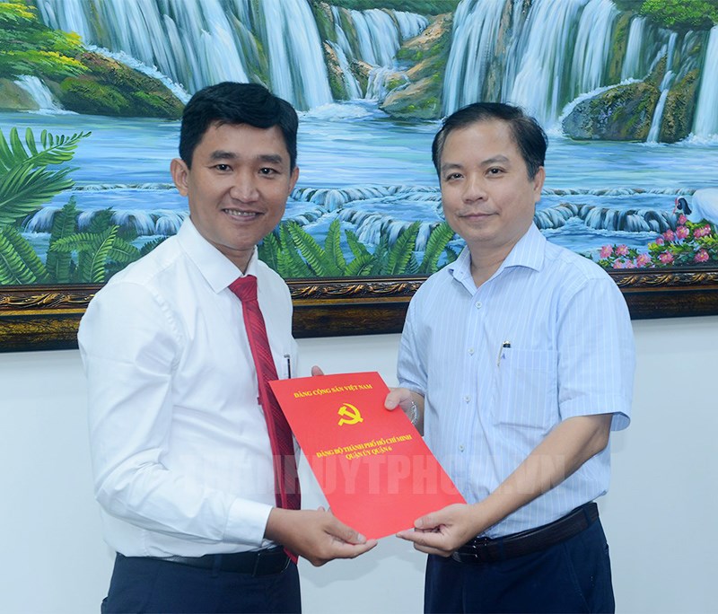 (Thanhuytphcm.vn) - Ngày 15/10, Bí thư Quận ủy Quận 6 Ma Xuân Việt trao Quyết định của Ban Thường vụ Quận ủy điều động, bổ nhiệm đồng chí Nguyễn Quốc Dương, Ủy viên Thường vụ Quận ủy, Chủ tịch Ủy ban MTTQ Việt Nam Quận 6 giữ chức vụ Trưởng ban Tuyên giáo Quận ủy, Giám đốc Trung tâm Chính trị Quận 6.