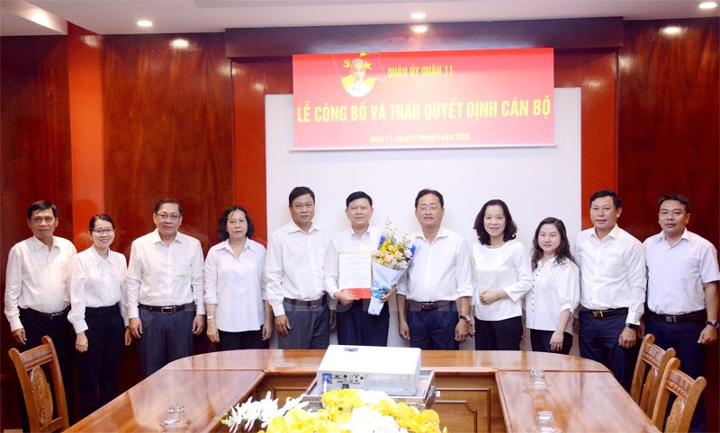 Lãnh đạo Quận 11 trao Quyết định cho đồng chí Nguyễn Tăng Minh.(Thanhuytphcm.vn) - Sáng 22/6, đồng chí Trương Quốc Lâm, Bí thư Quận ủy Quận 11 thay mặt Ban Thường vụ Quận ủy Quận 11 trao quyết định chỉ định đồng chí Nguyễn Tăng Minh, Phó Bí thư Thường trực Quận ủy Quận 11 tham gia Ban Chấp hành Đảng bộ, Ban Thường vụ Đảng ủy, giữ chức vụ Bí thư Đảng ủy Cơ quan Đảng – Đoàn thể Quận 11, nhiệm kỳ 2015 – 2020.