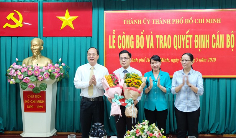 Trưởng Ban Tổ chức Thành ủy TPHCM Nguyễn Hồ Hải trao quyết định cho đồng chí Phạm Hưng Quốc Bảo.(Thanhuytphcm.vn) - Chiều 26/5, Thành ủy TPHCM tổ chức lễ công bố và trao quyết định cán bộ tại quận Tân Phú. Đến dự có Ủy viên Ban Thường vụ, Trưởng Ban Tổ chức Thành ủy TPHCM Nguyễn Hồ Hải; Bí thư Quận ủy quận Tân Phú Lê Thị Kim Hồng.