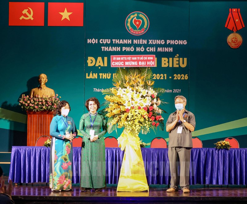 Đồng chí Tô Thị Bích Châu, Ủy viên Ban Thường vụ Thành ủy, Chủ tịch Ủy ban Mặt trận Tổ quốc Việt Nam Thành phố tặng hoa đại hội(Thanhuytphcm.vn) - Sáng 17/12, Hội Cựu TNXP Thành phố Hồ Chí Minh đã tổ chức Đại hội đại biểu lần thứ IV, nhiệm kỳ 2021-2026. Đến dự có các đồng chí: Vũ Trọng Kim, Chủ tịch Hội Cựu TNXP Việt Nam; Tô Thị Bích Châu, Ủy viên Ban Thường vụ Thành ủy, Chủ tịch Ủy ban Mặt trận Tổ quốc Việt Nam Thành phố; Dương Anh Đức, Thành ủy viên, Phó Chủ tịch UBND Thành phố.