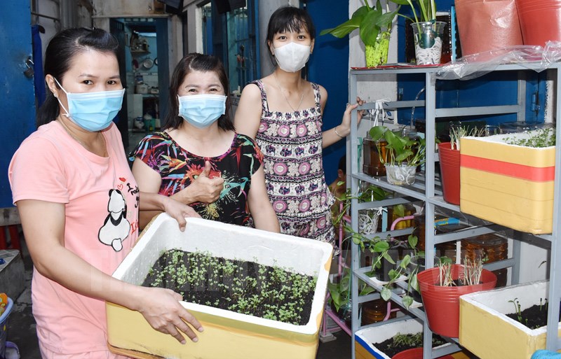 Bồn nước rửa tay phòng chống dịch Covid-19 tại khu nhà trọ của chị Võ Thị Hà, số 525/21 Quốc lộ 1A, Khu phố 3, phường Linh Xuân, quận Thủ Đức. Phó Chủ tịch Ủy ban MTTQ Việt Nam quận Thủ Đức Nguyễn Thị Thanh Luận cho biết: Nhằm giúp cho công nhân, người lao động đang tạm trú trên địa bàn quận vượt qua khó khăn do bị ảnh hưởng dịch covid-19, được sự thống nhất của Thường trực Quận ủy, Ban Thường trực Ủy ban MTTQ Việt Nam quận xây dựng kế hoạch về thực hiện cuộc vận động “Giảm giá cho thuê tiền phòng cho công nhân, người lao động đang tạm trú trên địa bàn quận bị ảnh hưởng dịch Covid-19”. Qua triển khai thực hiện, hầu hết các chủ nhà trọ nhiệt tình hưởng ứng cuộc vận động và đồng ý ký cam kết thực hiện việc giảm giá cho thuê tiền phòng. Tính đến ngày 10/4, toàn quận đã vận động được 1.356 hộ giảm giá cho thuê tiền phòng với 8.798 phòng và đã giúp cho 20.290 người ở trọ, với tổng số tiền hơn 2,3 tỷ đồng. Bên cạnh đó, tùy vào điều kiện của chủ nhà trọ và mức độ ảnh hưởng dịch của người thuê trọ, chủ nhà trọ sẽ hỗ trợ chăm lo thêm các nhu yếu phẩm (dầu ăn, gạo, mì gói, nước tương, đường, bột ngọt...) cho những hộ thật sự khó khăn, bị mất việc làm, hỗ trợ tiền thu gom rác, tiền nước, tiền điện...