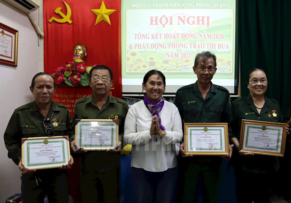 Các tập thể, cá nhân nhận Giấy khen của Hội Cựu TNXP TPHCM(Thanhuytphcm.vn) - Ngày 29/1, Hội Cựu Thanh niên xung phong (TNXP) Quận 1 tổng kết phong trào thi đua năm 2020 và phát động phong trào thi đua năm 2021. Đến dự có Phó Chủ tịch Hội Cựu TNXP TPHCM Ngô Long Xuân; Phó Chủ tịch Ủy ban MTTQ Việt Nam Quận 1 Lê Văn Phú.