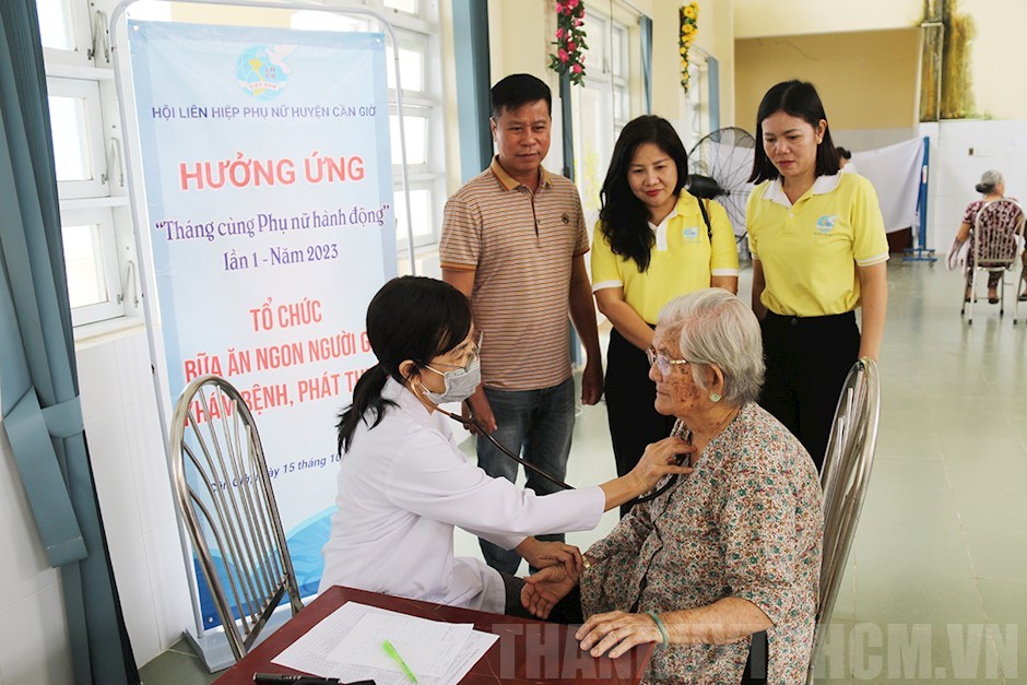 Khám bệnh cho người cao tuổi(Thanhuytphcm.vn) - Sáng 15/10, Hội Liên hiệp Phụ nữ (LHPN) huyện Cần Giờ tổ chức Lễ phát động “Tháng cùng phụ nữ hành động” lần 1 - năm 2023 với nhiều hoạt động thiết thực chăm lo cho người cao tuổi, phụ nữ, trẻ em có hoàn cảnh khó khăn trên địa bàn huyện.