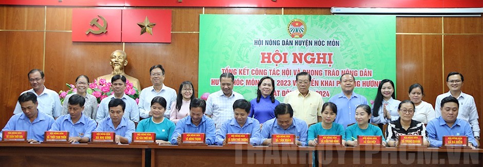 Lãnh đạo HND TPHCM và lãnh đạo huyện Hóc Môn và Đảng ủy các xã chứng kiến Lễ Ký kết thi đua năm 2024(Thanhuytphcm.vn) - Sáng 8/12, Hội Nông dân (HND) huyện Hóc Môn tổ chức hội nghị tổng kết công tác Hội và phong trào nông dân năm 2023; triển khai phương hướng hoạt động năm 2024.