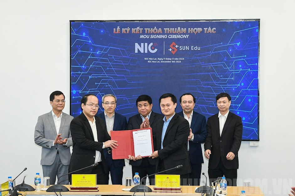 Dịp này, Bộ trưởng Nguyễn Chí Dũng và Chủ tịch Jensen Huang cùng các đại biểu cũng đã tham dự buổi khai giảng và chứng kiến lễ ký MOU giữa NIC và Sun Edu về đào tạo, hỗ trợ tư vấn, hướng dẫn chuyên môn trong lĩnh vực điện tử, vi mạch bán dẫn, công nghệ có liên quan nhằm góp phần phát triển nguồn nhân lực cho ngành công nghiệp bán dẫn Việt Nam và thúc đẩy các hoạt động đổi mới sáng tạo.