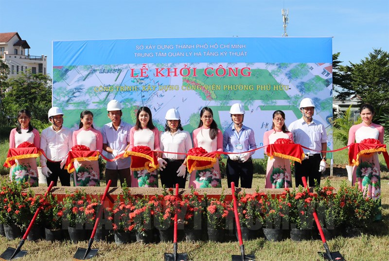 Nghi thức Lễ khởi công trình xây dựng công viên phường Phú Hữu.(Thanhuytphcm.vn) - Sáng 24/9, Trung tâm Quản lý Hạ tầng Kỹ thuật - Sở Xây dựng TPHCM phối hợp với phường Phú Hữu, Quận 9 đã tổ chức Lễ khởi công xây dựng công viên phường Phú Hữu.