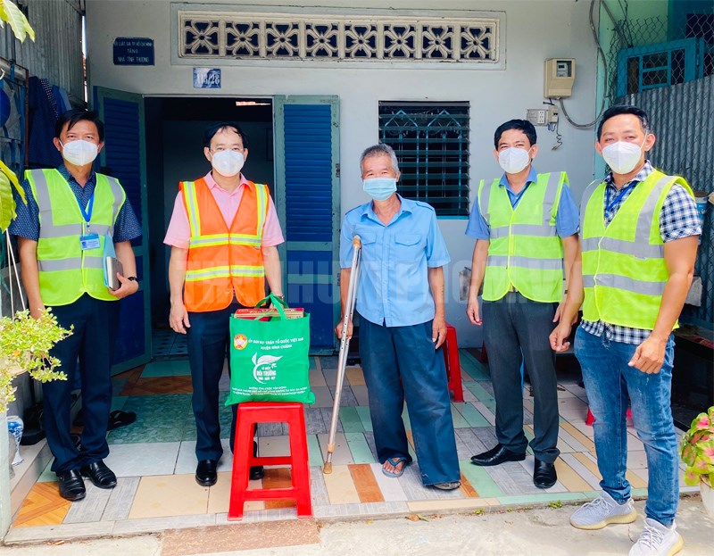Chủ tịch UBND huyện Bình Chánh Đào Gia Vượng tặng quà cho người dân có hoàn cảnh khó khăn do dịch Covid-19.(Thanhuytphcm.vn) - Sáng 7/8, đồng chí Đào Gia Vượng, Phó Bí thư Huyện ủy, Chủ tịch UBND huyện, Trưởng Ban Chỉ đạo phòng, chống dịch Covid-19 huyện Bình Chánh đã đến thăm các hộ nghèo, hộ cận nghèo, người lao động có hoàn cảnh khó khăn do ảnh hưởng của dịch Covid-19 tại các khu vực “vùng xanh” trên địa bàn xã Tân Kiên.