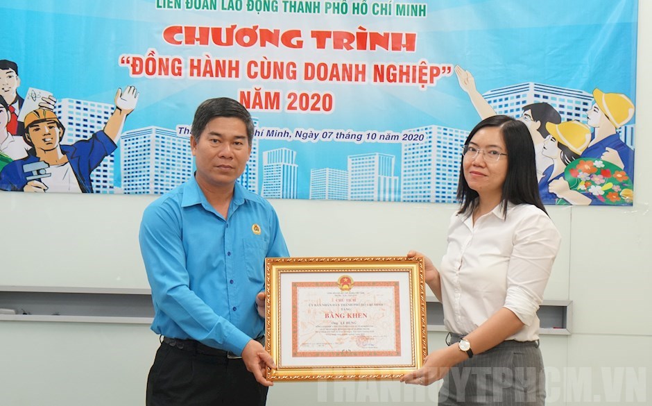 Dịp này, Phó Chủ tịch Liên đoàn Lao động TP Phạm Chí Tâm đã trao Bằng khen của UBND TP và biểu trưng khen thưởng của Liên đoàn Lao động Thành phố cho đại diện Ban Giám đốc Công ty vì đã chấp hành tốt pháp luật, có chính sách và chăm lo tốt cho công nhân lao động góp phần vào sự phát triển chung của TPHCM.