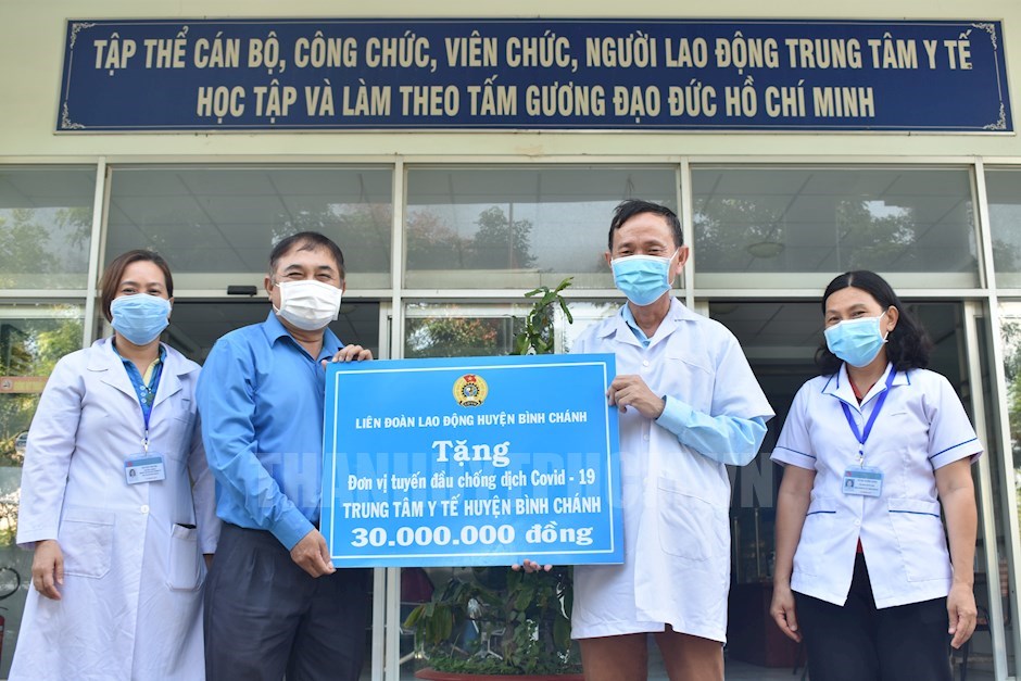 Dịp này, Liên đoàn Lao động huyện Bình Chánh hỗ trợ kinh phí phòng, chống dịch cho Trung tâm Y tế huyện, Bệnh viện huyện Bình Chánh, mỗi đơn vị 30 triệu đồng; Khu cách ly tập trung tại TTVH-TDTT xã An Phú Tây và trạm y tế các xã Vĩnh Lộc A, Bình Hưng, Phong Phú, mỗi đơn vị 10 triệu đồng.