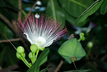 Mỗi mùa xuân đến, Trường Sa không chỉ có cành đào, cành mai từ đất liền gửi ra mà còn có hoa bàng vuông nở bung sắc thắm. Sóng gió biển khơi cùng những ngày lênh đênh trên biển, đào - mai không còn hoa nữa, chỉ có bàng vuông vẫn can trường, lung linh đón xuân cùng chiến sĩ. Từng chùm hoa lấp ló, nổi bật trên cành lá cứng cáp, xanh rì. Xúm xít bên những nụ non xanh mới nhú là vài nụ hoa đã lớn to tròn, e ấp, đợi đến khuya mới nở bung những cánh trắng ngần làm nền cho nhụy hoa đâm dài mềm mại màu tím hồng dịu dàng, đằm thắm. Một vẻ đẹp mong manh mà đài trang, dịu dàng mà lạ lẫm vô cùng! Không phải xuân về bàng vuông mới ra hoa, nhưng những chùm hoa nở trong mùa xuân lại mang đến cho quân và dân trên đảo những xúc cảm, ý nghĩa đặc biệt. Hoa bàng vuông tô điểm cho mùa xuân biển đảo, làm nguôi ngoai nỗi nhớ đất liền, sáng bừng con đường tuần tra.
