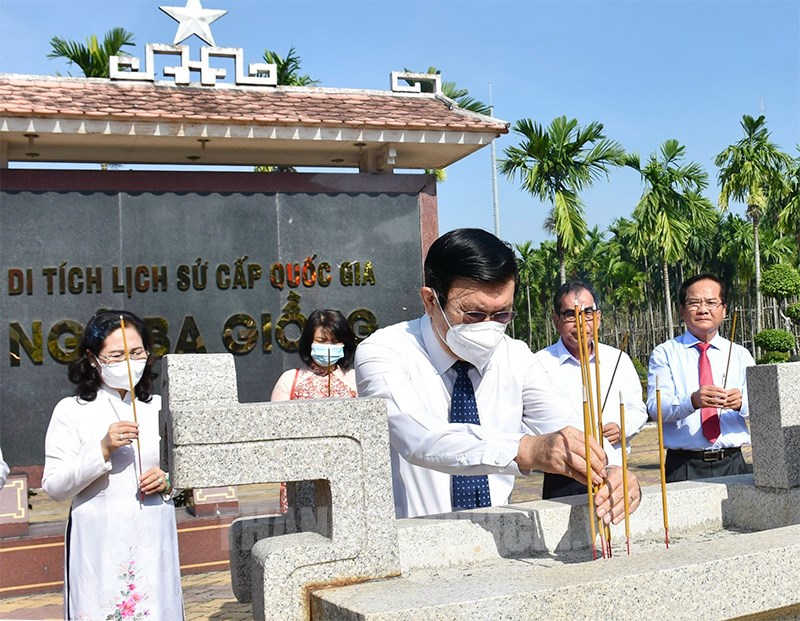 Nguyên Chủ tịch nước Trương Tấn Sang dâng hương tại Khu Di tích Lịch sử cấp quốc gia Ngã Ba Giồng.(Thanhuytphcm.vn) - Nhân kỷ niệm 77 năm Ngày Cách mạng Tháng Tám thành công (19/8/1945-19/8/2022), Ngày Quốc khánh nước Cộng hòa Xã hội Chủ nghĩa Việt Nam (2/9/1945 - 2/9/2022), Lễ giỗ 81 năm Ngày hy sinh các đồng chí nguyên lãnh đạo Đảng: đồng chí Hà Huy Tập, đồng chí Nguyễn Văn Cừ, đồng chí Võ Văn Tần, đồng chí Phan Đăng Lưu, đồng chí Nguyễn Thị Minh Khai và đồng chí Nguyễn Hữu Tiến (28/8/1941 – 28/8/2022), sáng 28/8, đoàn đại biểu TPHCM đã đến dâng hương tại Di tích Lịch sử Quốc gia Ngã Ba Giồng, Đài tưởng niệm các liệt sĩ hy sinh tại Nhà thương Giếng Nước, Di tích Lịch sử cấp TP “Nơi họp Hội nghị Xứ ủy Nam kỳ tháng 9 năm 1940” (huyện Hóc Môn).