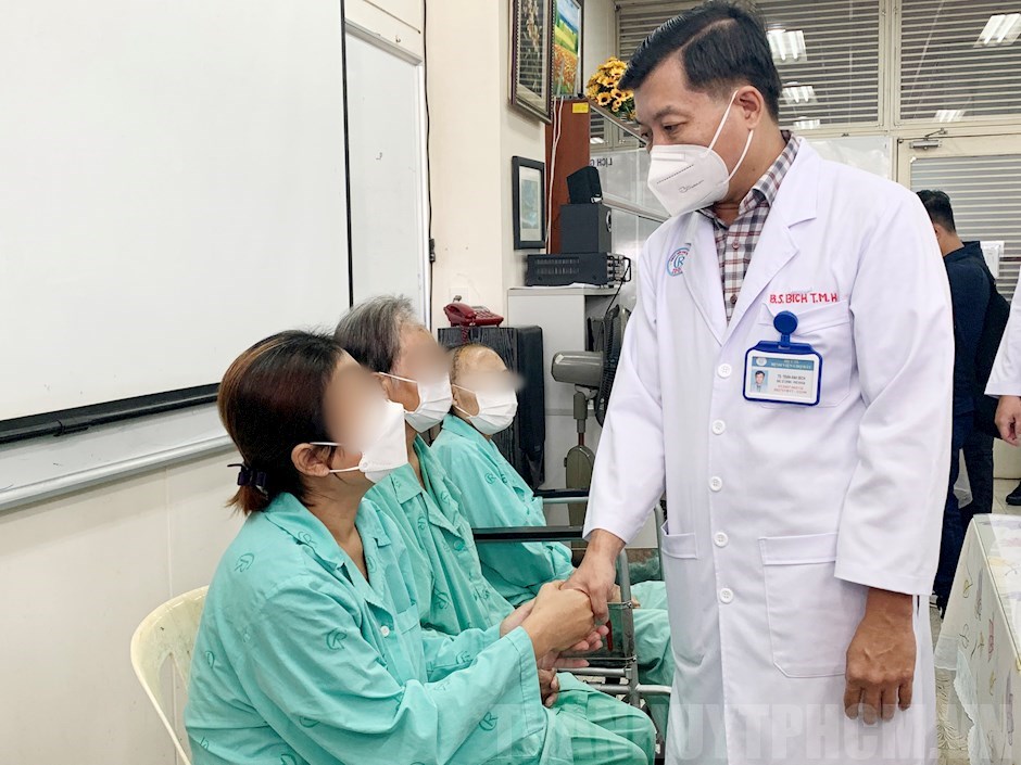 Các bác sĩ thăm hỏi bệnh nhân(Thanhuytphcm.vn) – Ngày 11/7, Bệnh viện Chợ Rẫy cho biết, trong thời gian 2 tháng, Bệnh viện Chợ Rẫy đã tiếp nhận 11 trường hợp người bệnh bị viêm xương, hoại tử xương vùng sọ, hàm, mặt không rõ nguyên nhân. Hiện tượng này xuất hiện ở các bệnh nhân có tiền căn mắc Covid-19.