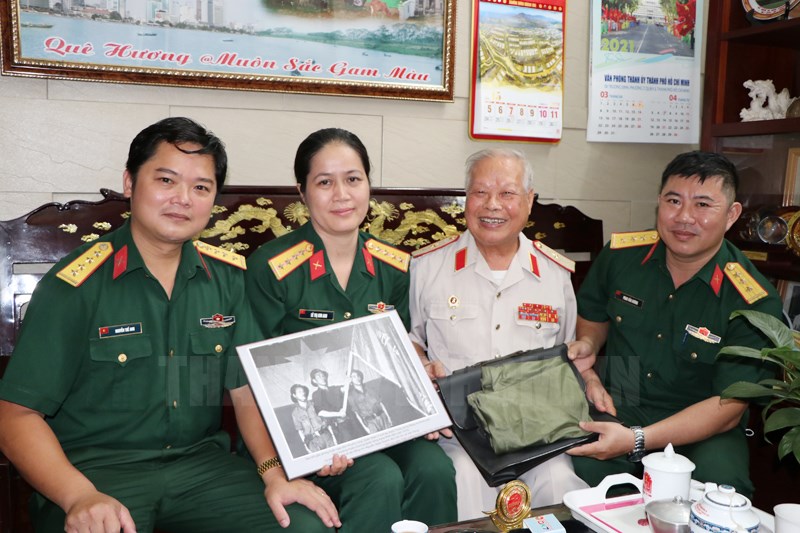 Thiếu tướng Nguyễn Ngọc Doanh (thứ 2 bên phải) tặng lại hiện vật cho Bảo tàng Quân khu 7(Thanhuytphcm.vn) - Trong những năm tháng chiến tranh ác liệt, những kỷ vật là minh chứng hào hùng cho một thời tuổi trẻ sẵn sàng dâng hiến; là khắc hoạ những câu chuyện cảm động về tình yêu, sự thủy chung son sắt và tinh thần đầy lạc quan, chiến thắng của những người lính trên trận tuyến đánh quân thù…