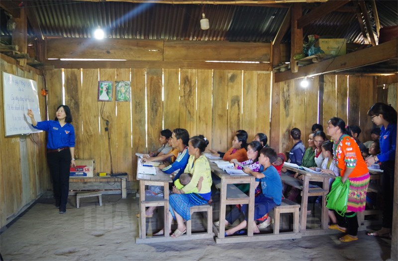 Đội viên trí thức trẻ tình nguyện xóa mù chữ cho bà con đồng bào trong vùng dự án.(Thanhuytphcm.vn) - Sáng 23/7, Bộ Tư lệnh Quân khu 7 tổ chức tổng kết 10 năm thực hiện Dự án “Tăng cường Trí thức trẻ tình nguyện (TTTTN) đến công tác tại các Khu Kinh tế quốc phòng (KTQP), giai đoạn 2010 – 2020”.