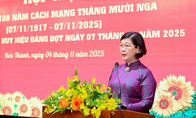 Đồng chí Hoàng Thị Tố Nga, Bí thư Đảng ủy, Chủ tịch HĐND phường Bến Thành phát biểu ôn truyền thốngNgày 4/11, Đảng ủy phường Bến Thành trang trọng tổ chức Họp mặt kỷ niệm 108 năm Cách mạng Tháng Mười Nga (7/11/1917 – 7/11/2025) và trao tặng Huy hiệu Đảng đợt ngày 7/11/2025.