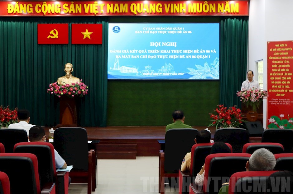 Phát biểu chỉ đạo hội nghị, Chủ tịch UBND Quận 1 Lê Đức Thanh đề nghị thủ trưởng các cơ quan, đơn vị phấn đấu hoàn thành những chỉ tiêu của đề án và đảm bảo đúng tiến độ; đề nghị Công an quận kiến nghị Công an thành phố hỗ trợ kết nối đường truyền để khai thác, tích hợp dữ liệu dân cư phục vụ chia sẻ dữ liệu; tổ chức tập huấn hướng dẫn thực hiện những nội dung của Đề án 06 cho các cơ quan, đơn vị có liên quan; tuyên truyền đến người dân, doanh nghiệp về những lợi ích thiết thực của đề án.