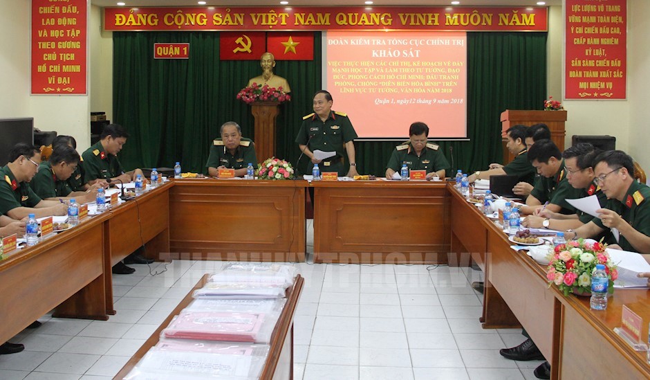 Phát biểu tại buổi khảo sát, Đại tá Nguyễn Như Trúc, Phó Cục trưởng Cục Tuyên huấn, Tổng cục Chính trị đề nghị trong thời gian tới, Đảng ủy Quân sự - Ban Chỉ huy Quân sự Quận 1 tiếp tục thực hiện tốt việc học tập Chỉ thị số 05-CT/TW của Bộ Chính trị gắn với thực hiện Nghị quyết Trung ương 4 khóa XII cho từng cán bộ, đảng viên, dân quân; đẩy mạnh công tác đấu tranh phòng, chống “diễn biến hòa bình” trên lĩnh vực tư tưởng, văn hóa làm thất bại âm mưu, hoạt động “diễn biến hòa bình” của các thế lực thù địch, giữ vững trận địa tư tưởng của Đảng cho cán bộ, chiến sĩ lực lượng vũ trang quận; phối hợp tốt với các lực lượng chức năng, ban, ngành của quận tuyên truyền đường lối, chủ trương của Đảng, pháp luật của nhà nước đến cho người dân, góp phần vạch trần âm mưu của các thế lực thù địch chống phá cách mạng…