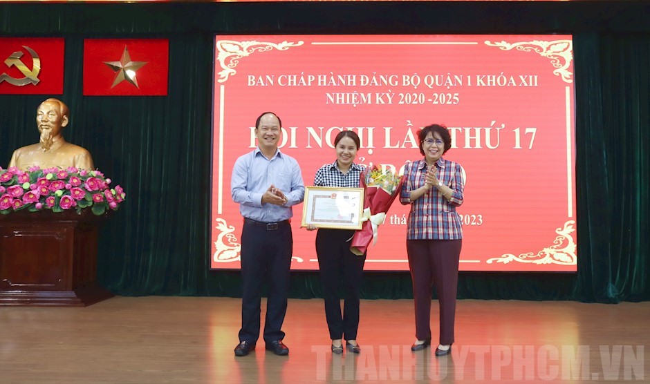 Trao khen thưởng cho đồng chí Nguyễn Thị Lê Hương - cá nhân có thành tích xuất sắc trong Hội thi cán bộ giảng dạy chính trị cấp toàn quân năm 2023(Thanhuyhcm.vn) - Ngày 27/7, Quận ủy Quận 1 tổ chức Hội nghị lần thứ 17 Ban Chấp hành Đảng bộ Quận 1 khóa XII. Đồng chí Tô Thị Bích Châu, Ủy viên Ban Thường vụ Thành ủy, Bí thư Quận ủy Quận 1 chủ trì hội nghị .