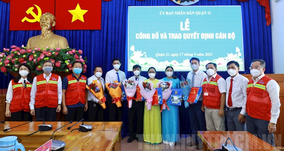 Theo đó, Chủ tịch UBND Quận 11 đã trao quyết định về điều động và bổ nhiệm bà Đổng Thị Mây, sinh năm 1986, công chức địa chính – xây dựng – đô thị và môi trường UBND Phường 3 giữ chức vụ Phó Chủ tịch UBND Phường 2; điều động và bổ nhiệm ông Nguyễn Nhựt Trường, sinh năm 1992, công chức địa chính – xây dựng – đô thị và môi trường UBND Phường 2 giữ chức vụ Phó Chủ tịch UBND Phường 3; bổ nhiệm bà Nguyễn Việt Hòa, sinh năm 1983, Đảng ủy viên Đảng ủy Phường 6, công chức văn hóa – xã hội UBND Phường 6 giữ chức vụ Phó Chủ tịch UBND Phường 6; bổ nhiệm ông Lục Minh Diệu, sinh năm 1988, công chức văn hóa – xã hội UBND Phường 10 giữ chức vụ Phó Chủ tịch UBND Phường 10; bổ nhiệm ông Nguyễn Trọng Hòa, sinh năm 1981, công chức địa chính – xây dựng – đô thị và môi trường UBND Phường 11 giữ chức vụ Phó Chủ tịch UBND Phường 11; điều động và bổ nhiệm ông Nguyễn Minh Tùng, sinh năm 1989, chuyên viên Phòng Lao động – Thương binh và Xã hội Quận giữ chức vụ Phó Chủ tịch UBND Phường 12. Các quyết định có hiệu lực kể từ ngày 17/9/2021 và thời gian bổ nhiệm là 5 năm.