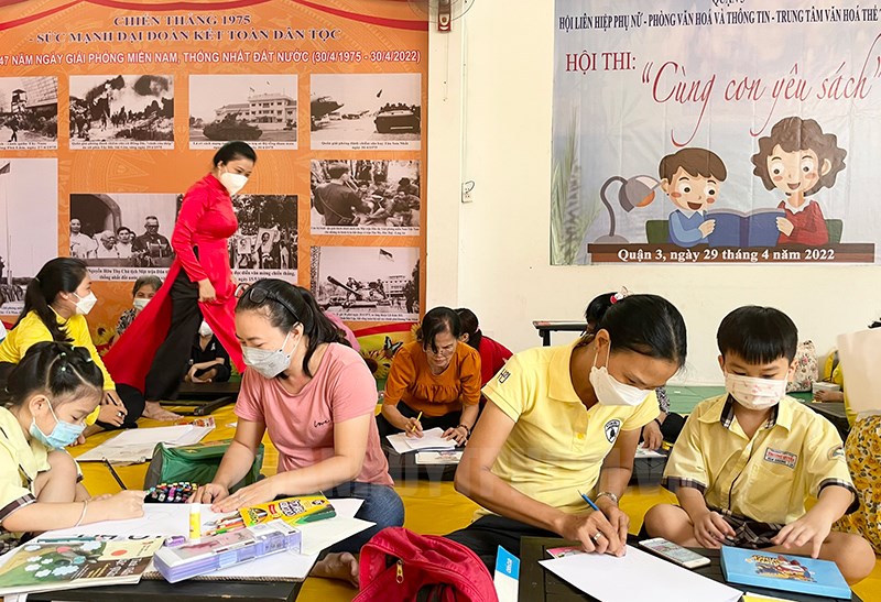 Các cặp mẹ con, bà cháu tham gia hoạt động “Cùng con yêu sách”(Thanhuytphcm.vn) - Sáng 29/4, Trung tâm Văn hoá – Thể thao Quận 3 phối hợp với Hội Liên Hiệp Phụ nữ, Phòng Văn hoá và Thông tin Quận 3 tổ chức Tuần lễ “Khơi nguồn văn hóa đọc, kết nối cộng đồng” kỷ niệm Ngày sách Việt Nam (21/4) và 47 năm Ngày giải phóng hoàn toàn miền Nam, thống nhất đất nước.