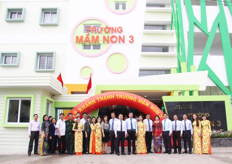 Trường Mầm non 3 được xây dựng trên khu đất của Trường Tiểu học Nguyễn Huệ 3 cũ, có tổng diện tích hơn 890m2, tổng diện tích sàn xây dựng hơn 2.100m2; trong đó, diện tích sân bãi, cây xanh hơn 300m2. Sau hơn 1 năm thi công, công trình đã hoàn thành gồm 1 trệt, 3 lầu được thiết kế với 10 phòng học, phòng Ban giám hiệu, các phòng chức năng. Tổng mức đầu tư hơn 26,6 tỷ đồng.