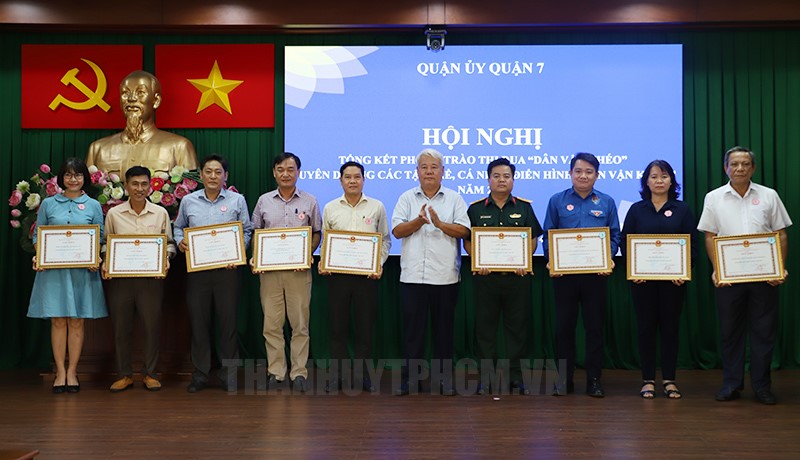 Dịp này, UBND Quận 7 khen thưởng 19 tập thể, 25 cá nhân và 18 hộ gia đình tiêu biểu là gương điển hình Dân vận khéo năm 2023.
